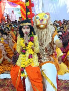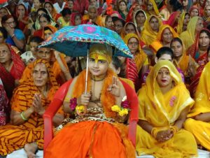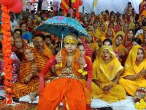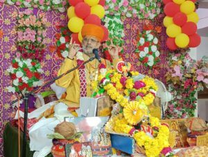 कोटा: दिनांक 13 अगस्त श्री बेटन सिंह चौहान एवं श्रीमती कुषमा देवी चौहान परिवार द्वारा आयोजित अधिकमास (पुरुषोत्तम मास) के पावन अवसर पर जय अम्बे नगर, रंगबाड़ी, पुलिस चौकी के पास, कोटा (राजस्थान) में श्रीमद्भागवत कथा ज्ञान यज्ञ के पंचम दिवस पर परम पूज्य डॉ. कार्ष्णि पं. भरत जी महाराज ने भागवत में भगवान राम और कृष्ण जन्म उत्सव की कथा सुनाई।