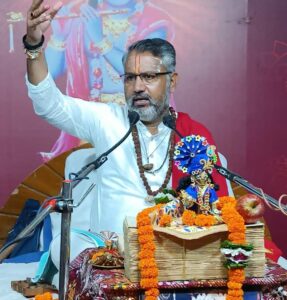 कथा के मुख्य यजमान: श्री राधा कृष्ण मंडल, मुम्बई दहिसर वैशाली नगर है।