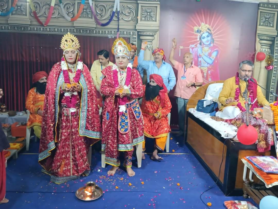 हरिद्वार : दिनांक 10 सितंबर श्री मद् सेवा सत्कर्म परिवार द्वारा आयोजित पवित्र श्रावण मास कृष्ण जन्माष्टमी पावन दिवस श्रीमद् भागवत सप्ताह ज्ञानयज्ञ महोत्सव अंतर्गत देवभूमि हरिद्वार में श्रीमद् भागवत कथा पूज्य गुरुदेव भागवताचार्य सुरेशचंद्रजी पंड्या के मुखारविंद से दिनांक 5 सितंबर से 11 सितंबर, भारत माता मंदिर के पास, कच्छी आश्रम, हरिद्वार में चल रही श्रीमद् भागवत कथा ज्ञान महायज्ञ में कथा वाचक ने षष्ठम दिवस श्रीकृष्ण-रुक्मणी विवाह प्रसंग सुनाया। श्रद्धालुओं ने भगवान श्रीकृष्ण-रुक्मणी विवाह को एकाग्रता से सुना। श्रीकृष्ण-रुक्मणि का वेश धारण किए कलाकारों पर भारी संख्या में आए श्रद्धालुओं ने पुष्पवर्षा कर स्वागत किया।