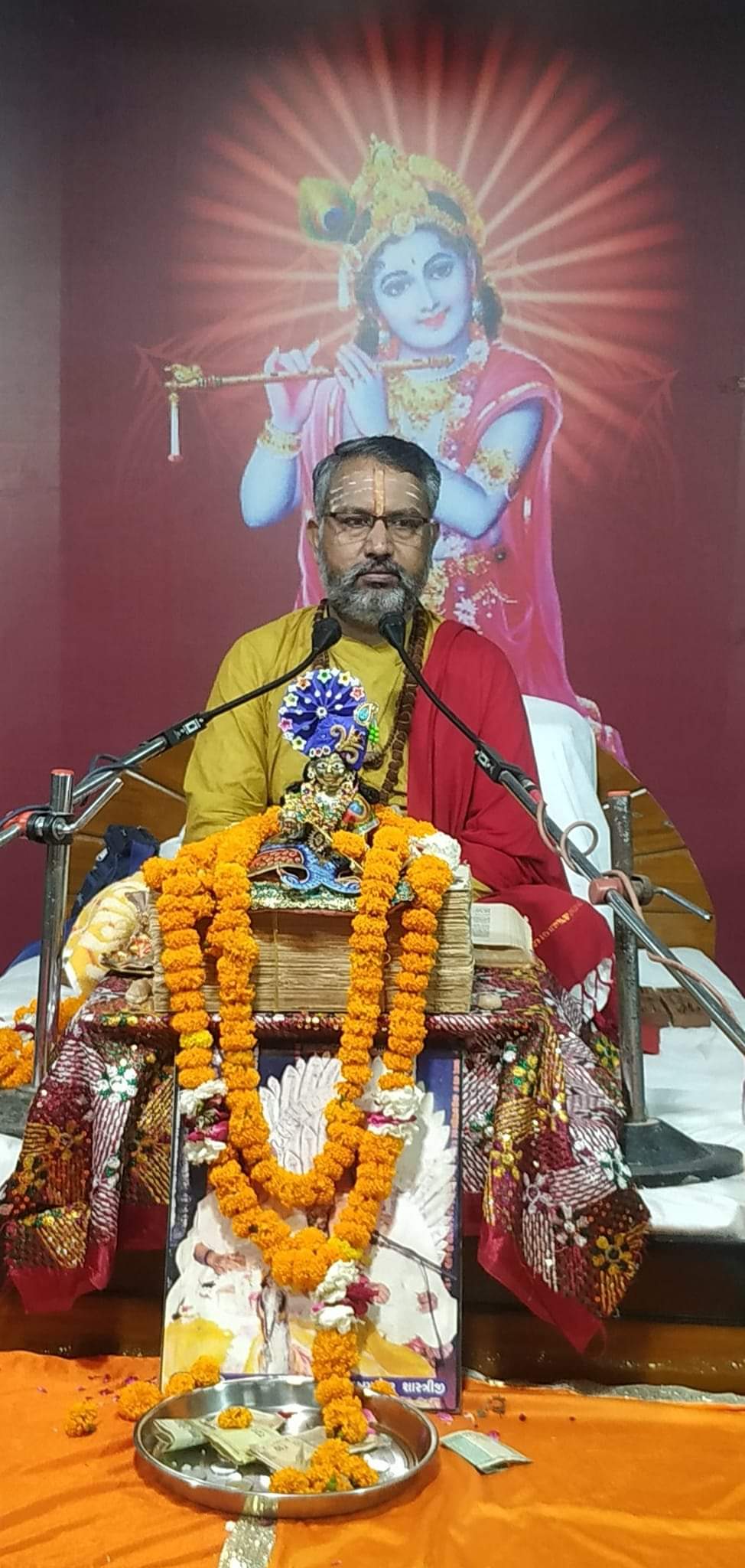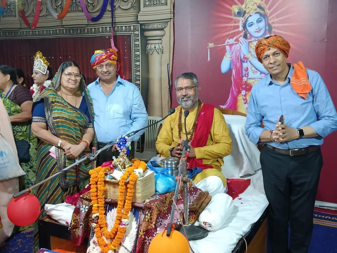 कथा के मुख्य यजमान: श्री राधा कृष्ण मंडल, मुम्बई दहिसर वैशाली नगर है।