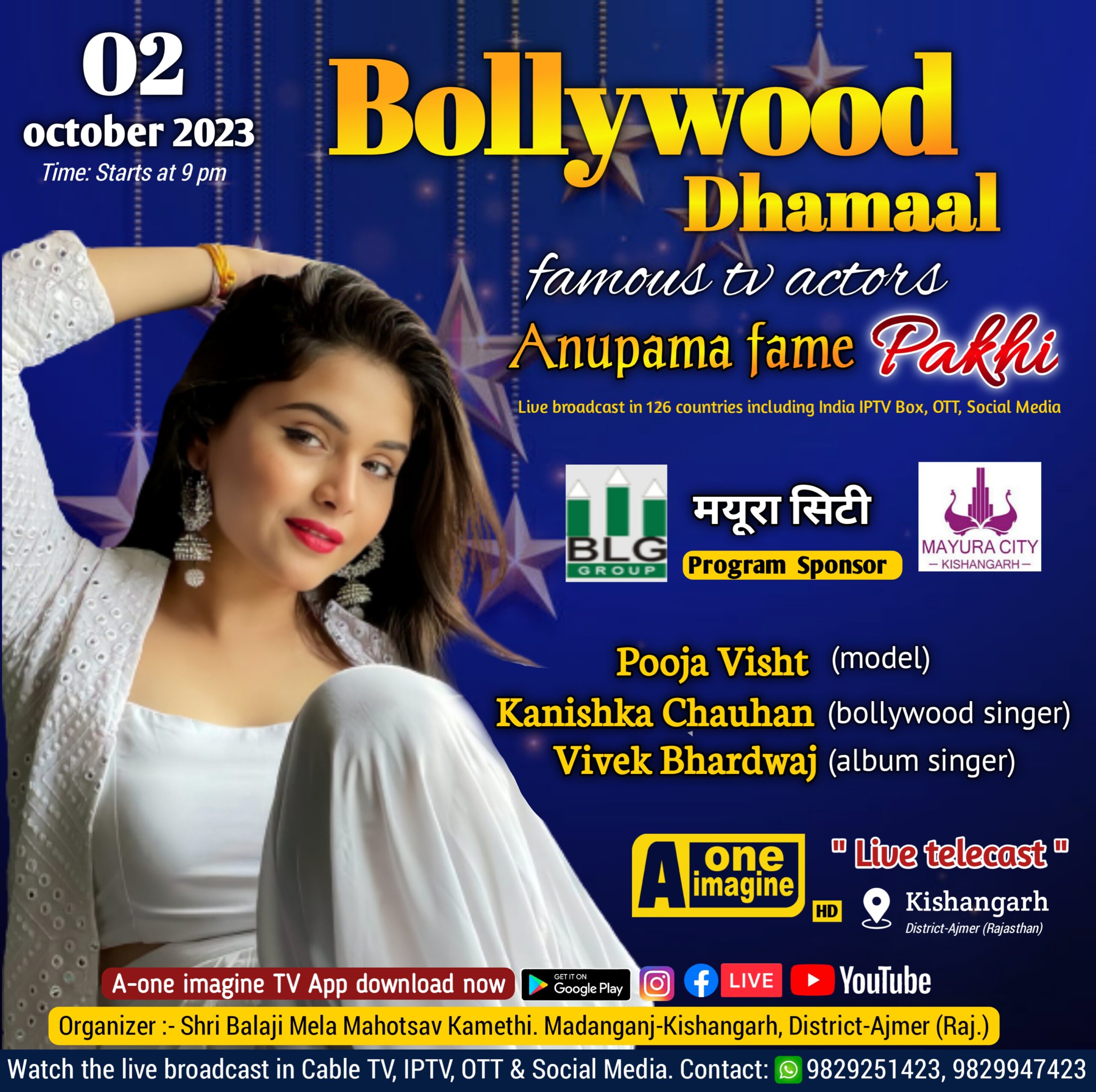 Kishangarh : 02 October 2023 Bollywood Dhamaal A-ONE IMAGINE September 29, 2023 in Programme News - 0 Minutes Kishangarh : 02 October 2023 Bollywood Dhamaal famous TV actress Anupama fame Pakhi. “watch the program live”