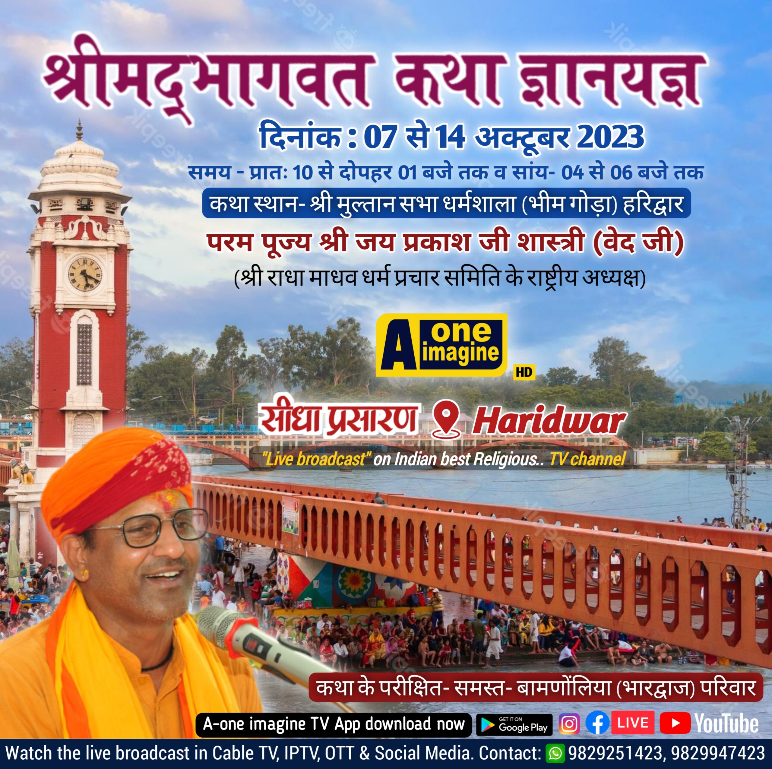 हरिद्वार : श्रीमद् भागवत कथा का आगाज 07 से 14 अक्टूबर 2023 कथा प्रवक्ता श्री जय प्रकाश जी शास्त्री (वेद जी) के श्रीमुख से स्थान- श्री मुल्तान सभा धर्मशाला (भीम गोड़ा) हरिद्वार से “सीधा प्रसारण”
