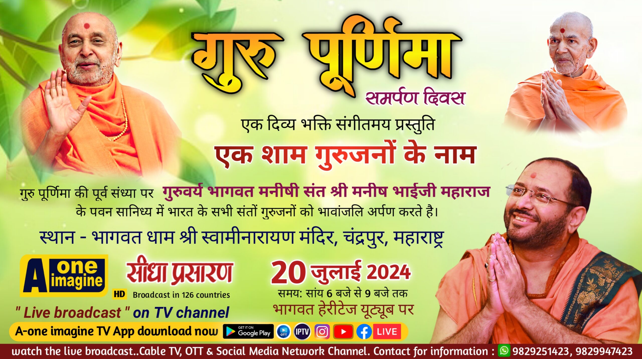 चंद्रपुर महाराष्ट्र: गुरुपूर्णिम समर्पण दिवस पर एक शाम गुरुजनों के नाम” A-ONE IMAGINE July 19, 2024 in Posters - 0 Minutes